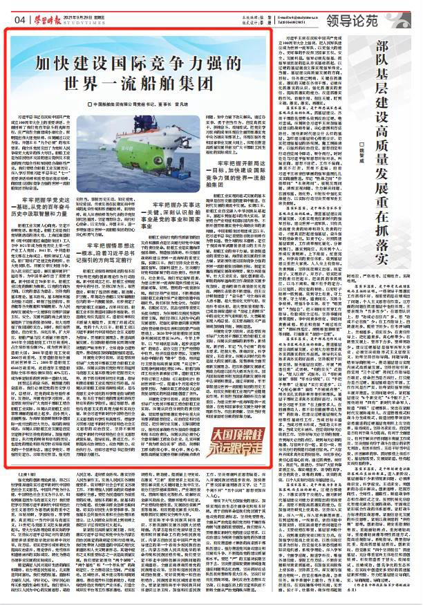 9月29日,《學(xué)習(xí)時報》刊發(fā)中國船舶集團(tuán)黨組書記、董事長雷凡培署名文章《加快建設(shè)國際競爭力強(qiáng)的世界一流船舶集團(tuán)》,現(xiàn)全文分享如下。