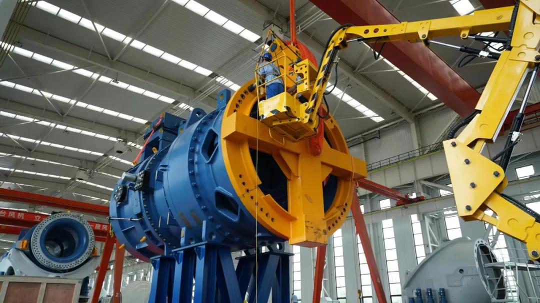 我國風輪直徑最大、全球單位千瓦掃風面積最高10兆瓦級海上風電機組下線