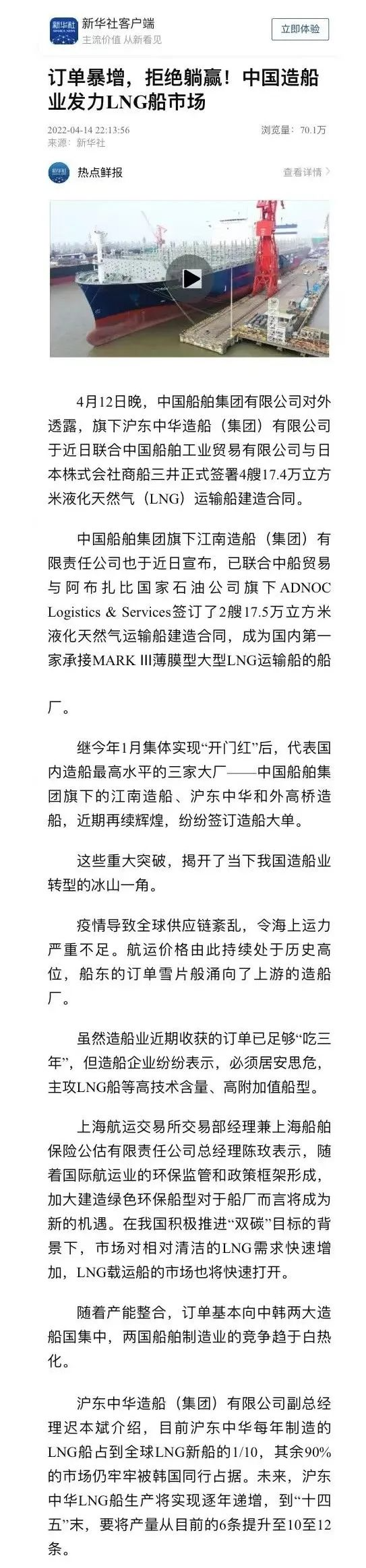 新華社聚焦:中國船舶發力LNG船市場,詮釋“不躺贏”!