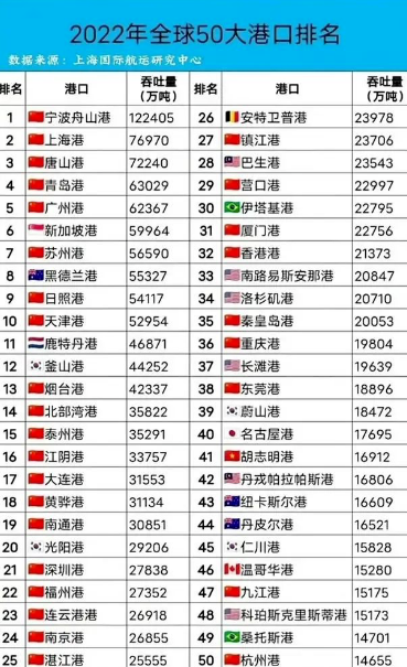 從規(guī)模上講,在世界排名前十的港口當(dāng)中,中國占有八席。